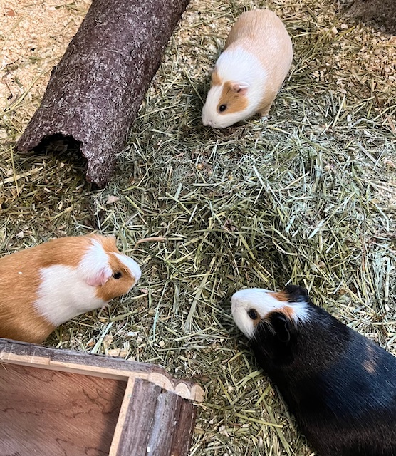 Ebenfalls mit im Einsatz sind meine 3 Meerschweinchen aus dem Tierschutz. Sie wurden aus schlechter Haltung gerettet und sind jetzt glücklich in ihrem neuen Zuhause. Mittlerweile sind sie zutraulich, neugierig und freuen sich immer über gesunde Snacks 🙂