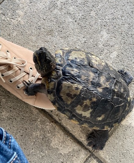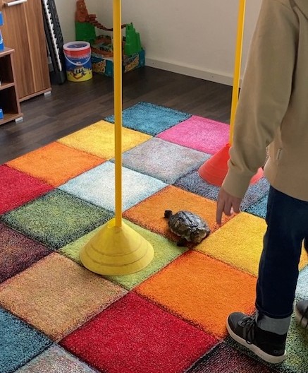 Und last but not least: die Wasserschildkröte 🙂 Sie verlässt gerne ihr Aquarium und freut sich über jeden Kontakt zu Menschen.